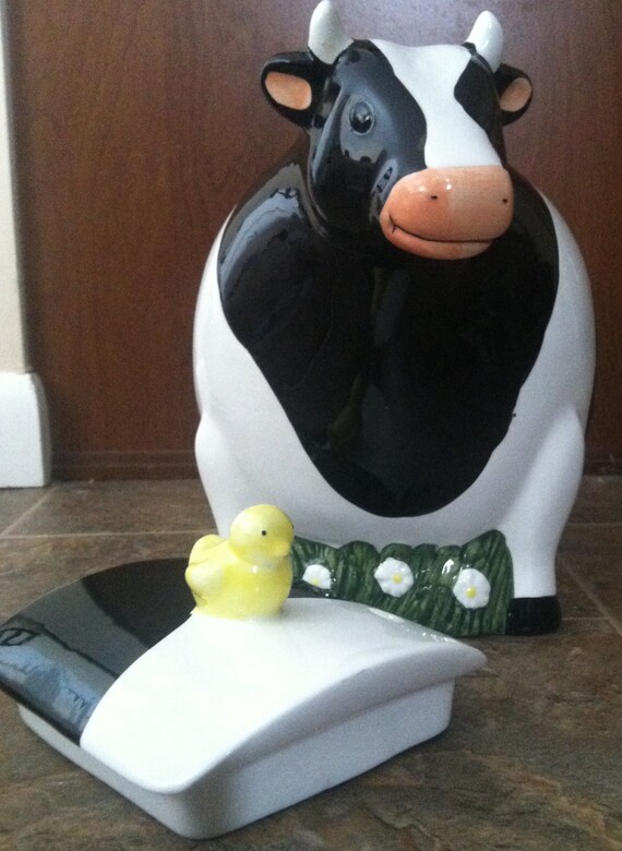 Boston warehouse udderly cow spoon rest, hand painted ceramic $9.83. I love loved the pig the colour was right on! New terramoto ceramic black white striped canister jar yellow lid honeybees. Very versatile design, perfect for brightening up any kitchen. With lots of room inside, the sizable cookie jar provides ample space to store a full batch of cookies or biscuits.